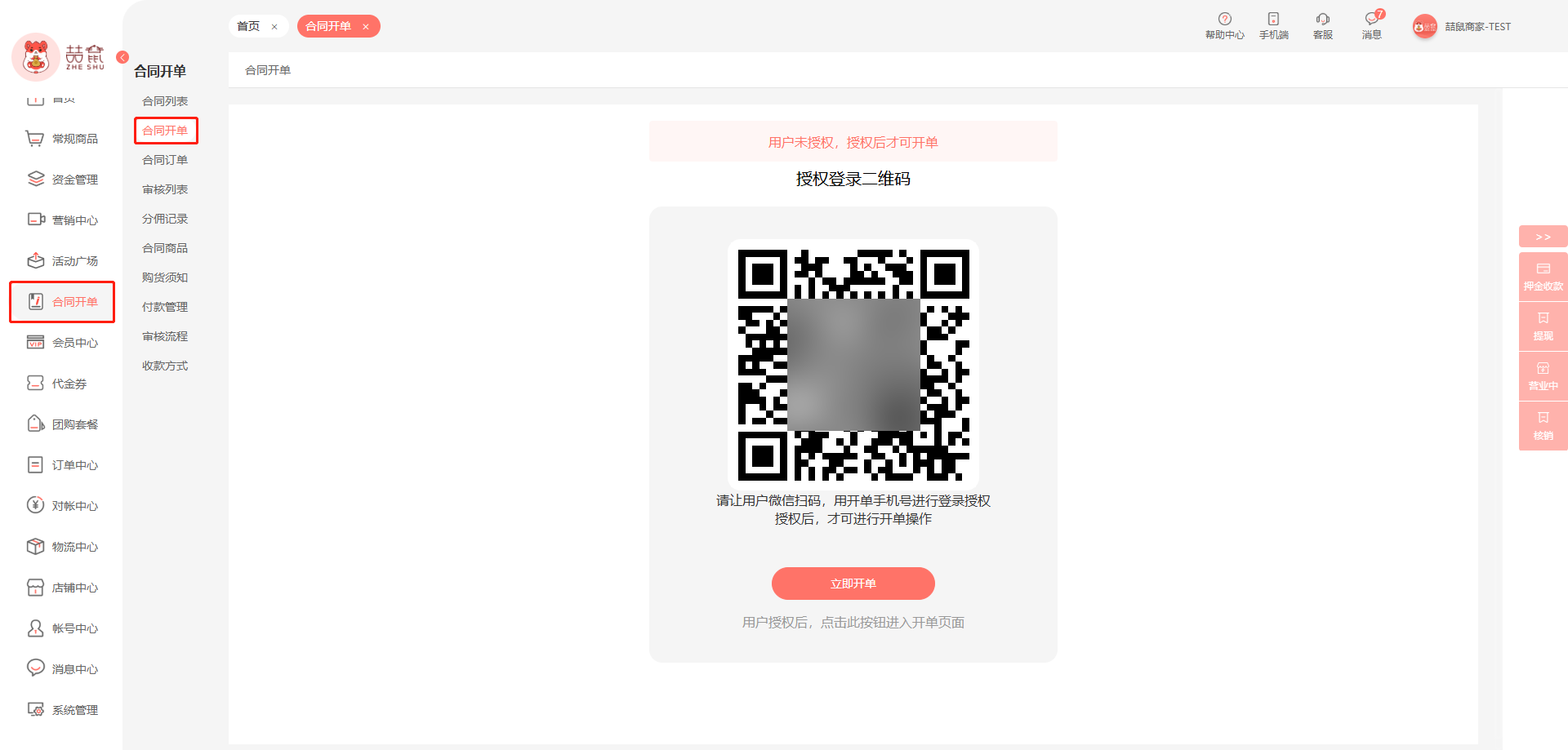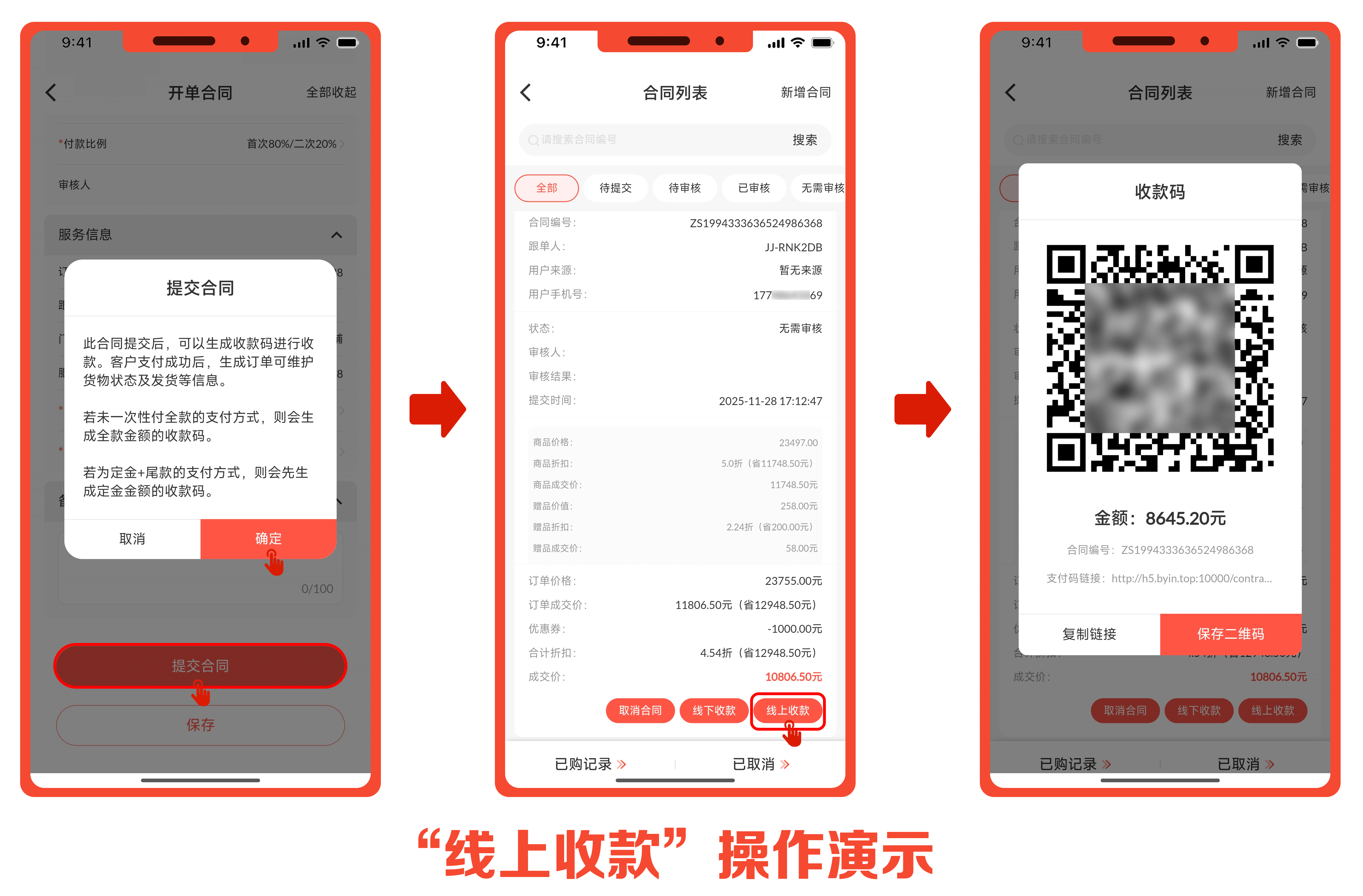 审批通过,开单人员即可前往查看合同列表获取收款码。