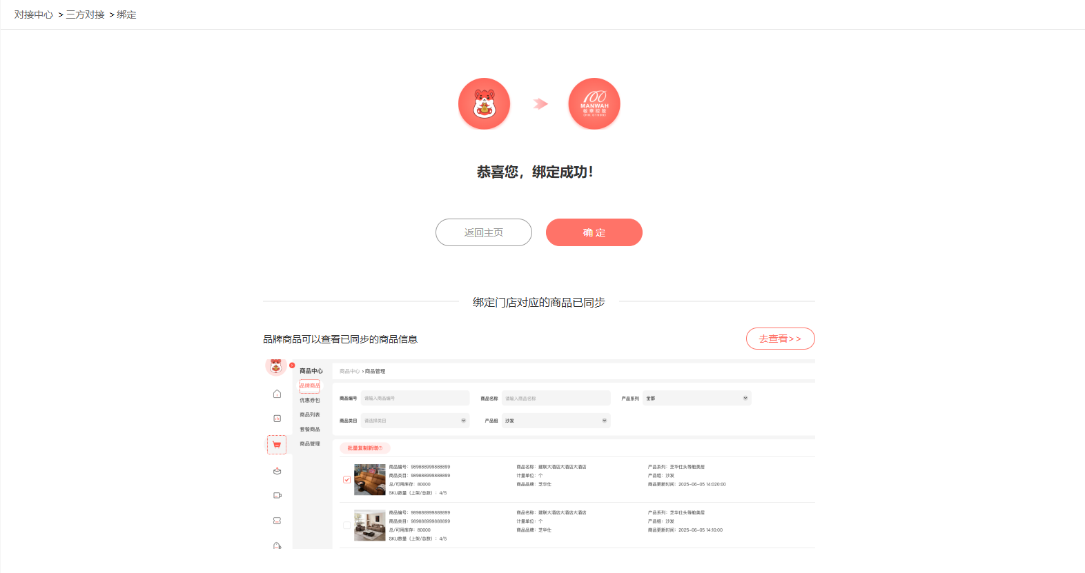 绑定成功后,点击“去查看”可前往查看已同步的品牌商品,可对其进行复制新增操作(仅可在网页端操作)。