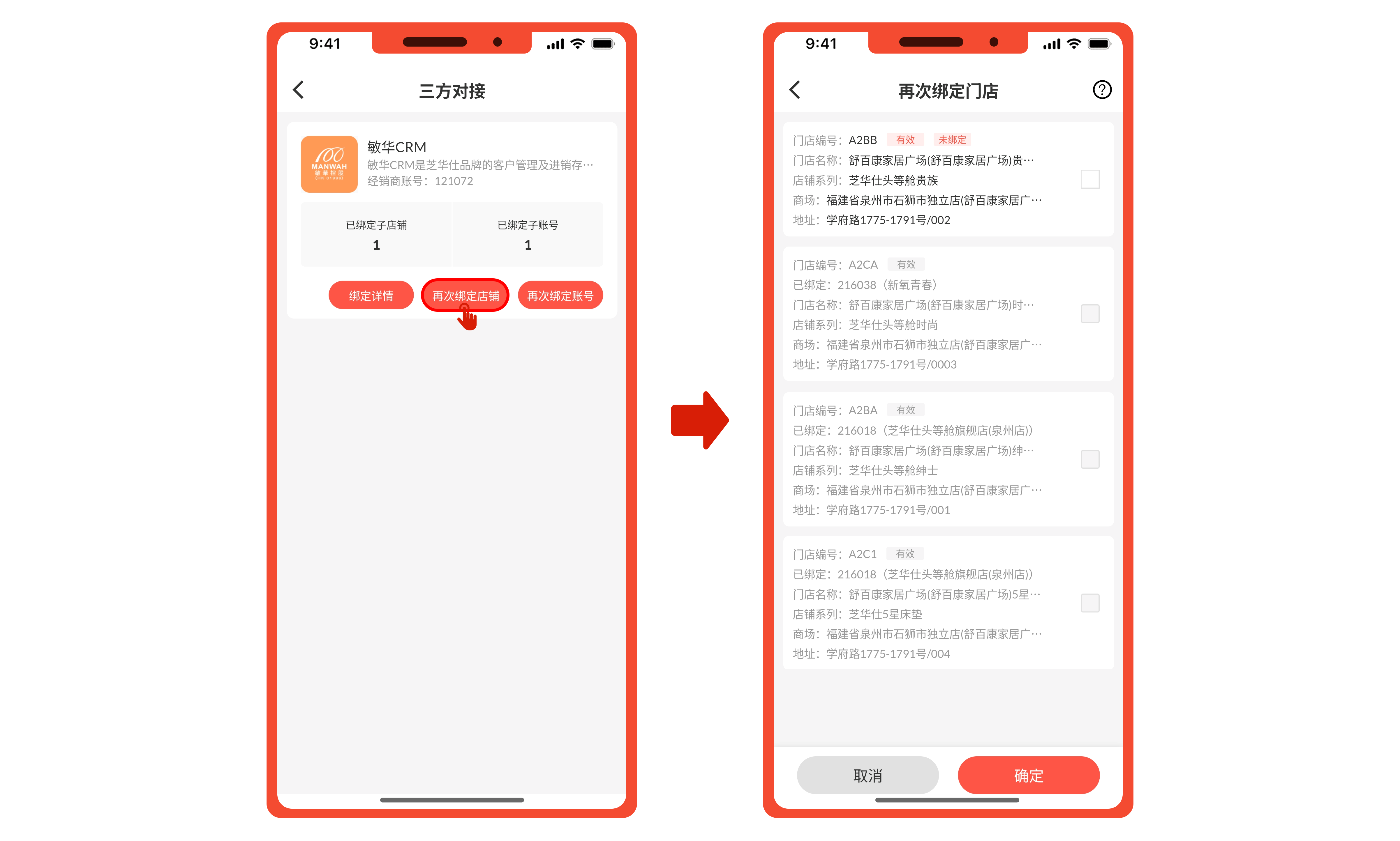 • 一个喆鼠店铺允许绑定相同商场地址的所有子店铺