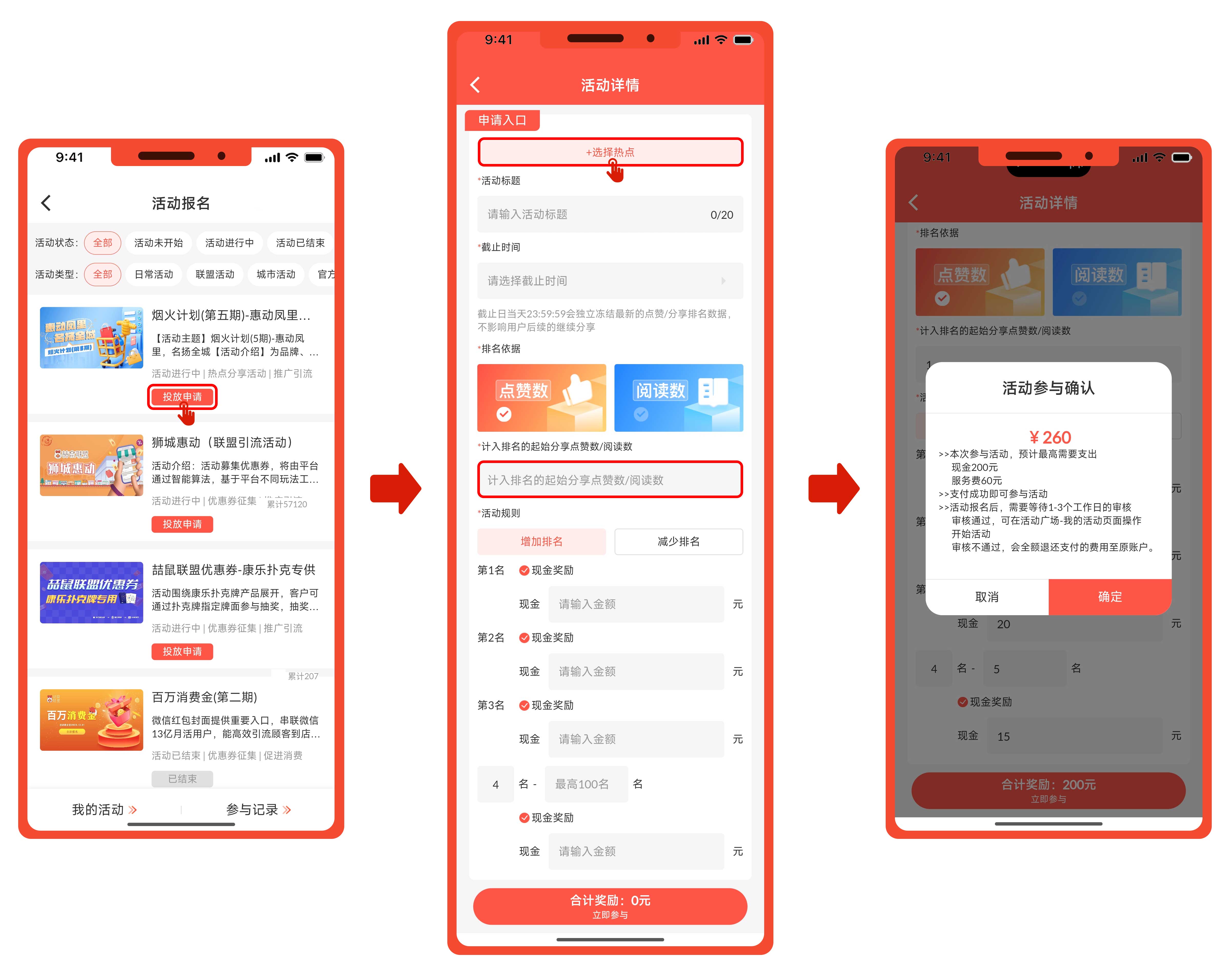 选择投放对应活动后,仔细阅读活动规则及要求,然后进行活动配置