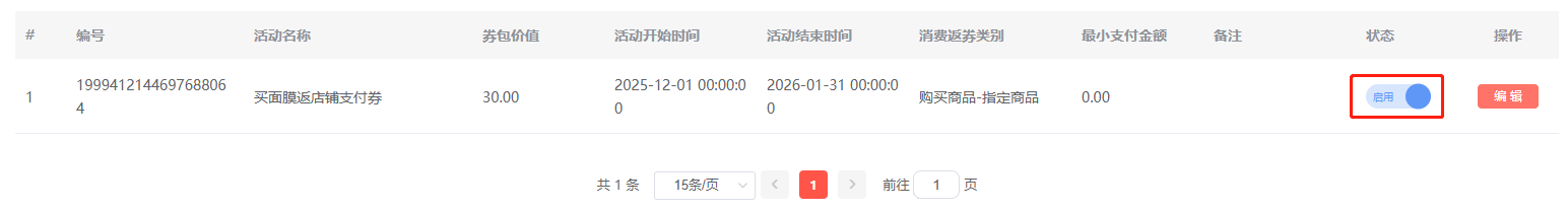 活动创建成功默认为禁用状态,需前往活动列表页手动开启。