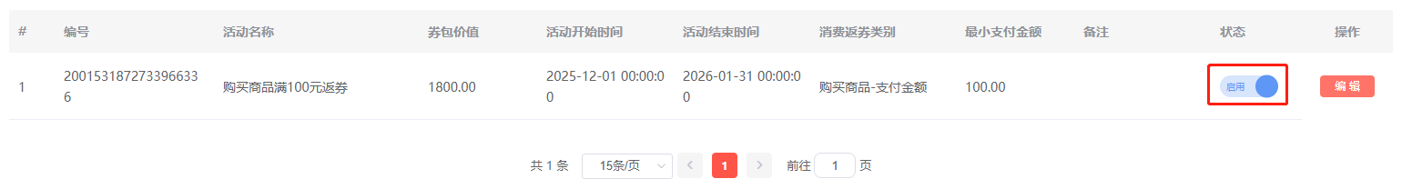 活动创建成功默认为禁用状态,需前往活动列表页手动开启。