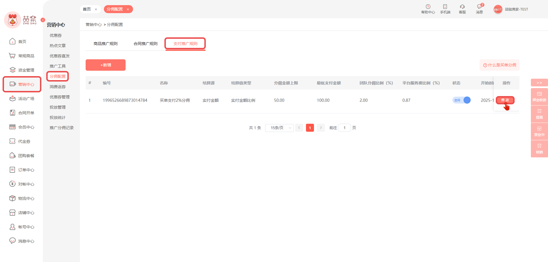 - 结算源:实付金额(即为分佣的金额根据订单实际支付的金额进行计算)