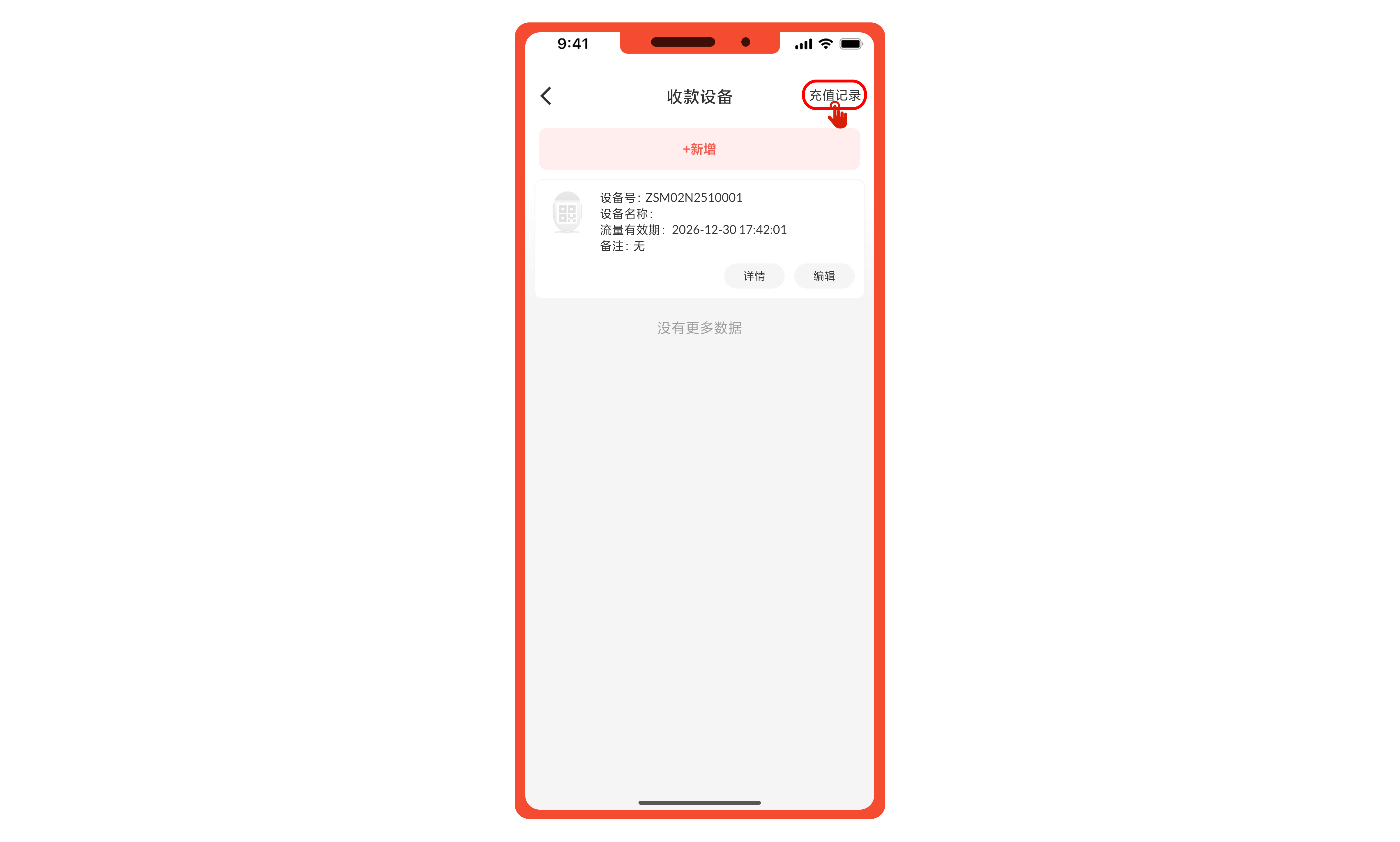 在收款设备页面,点击右上角的“充值记录”,进入后可查看具体的充值明细